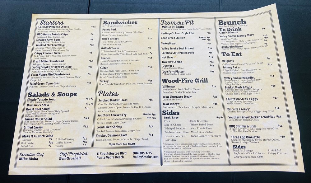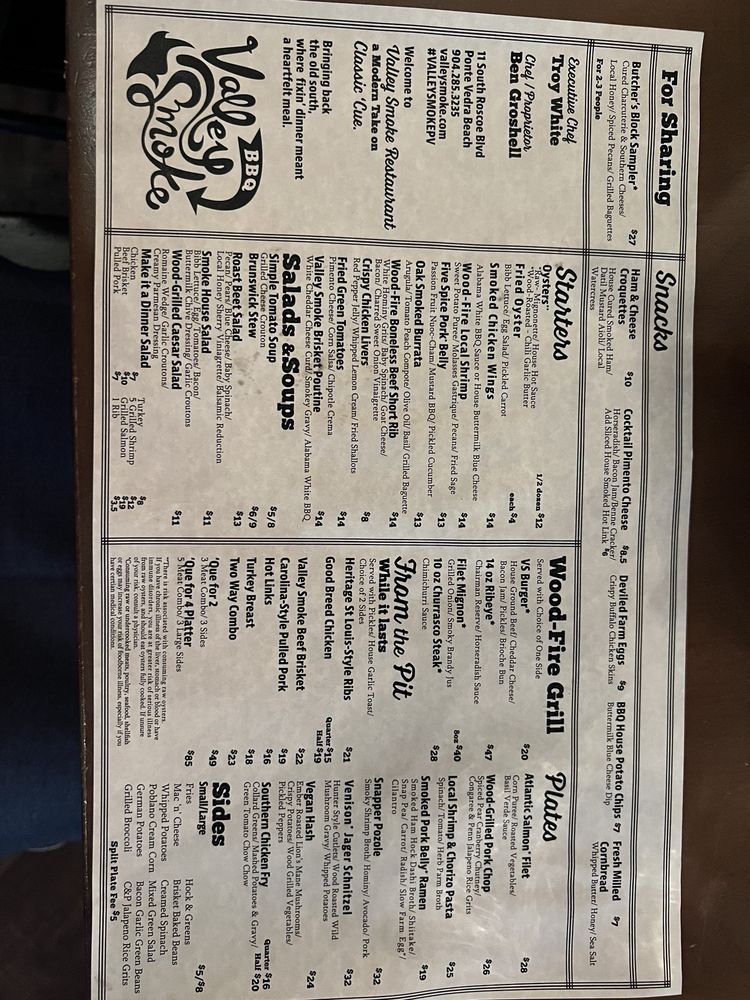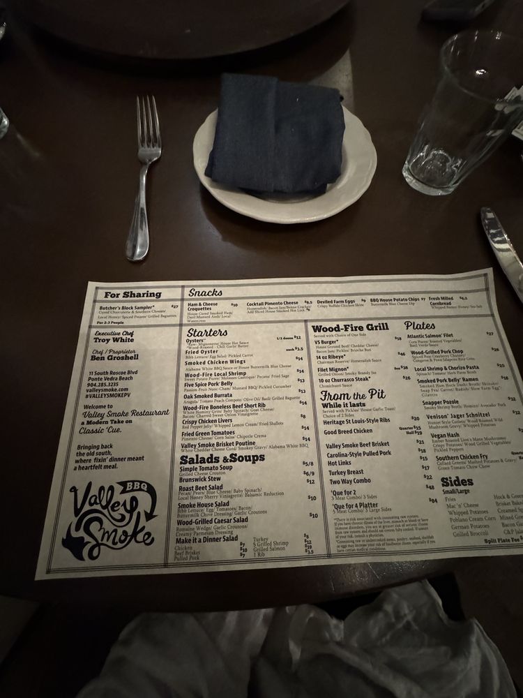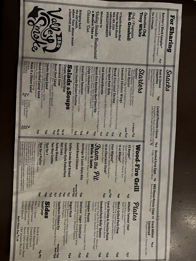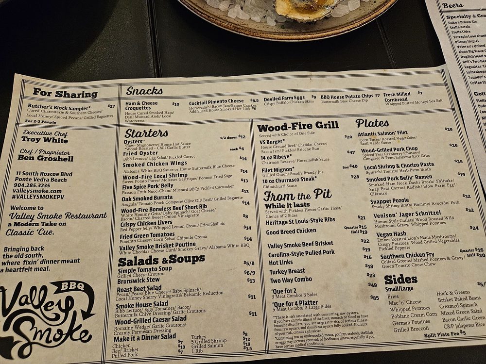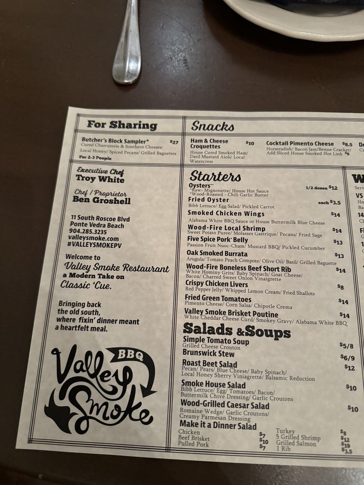 Valley Smoke Restaurant in Ponte Vedra Beach offers a trendy and classy dining experience, specializing in barbeque dishes with a Southern comfort menu. Customers rave about the flavorful food, excellent service, and charming ambiance. The restaurant provides a variety of options, including vegetarian dishes, making it a great choice for groups and families. The scenic outdoor seating area overlooking the water enhances the dining experience. Popular menu items include the 'Que for 2 platter, brisket, ribs, and chicken, served with delicious sides like mashed potatoes and creamed spinach. The unique twist on traditional dishes, like the sushi rice grits and flavorful tacos, showcases the creativity of Valley Smoke's culinary team. Overall, this restaurant is a must-visit for those looking for a memorable dining experience in a picturesque setting.